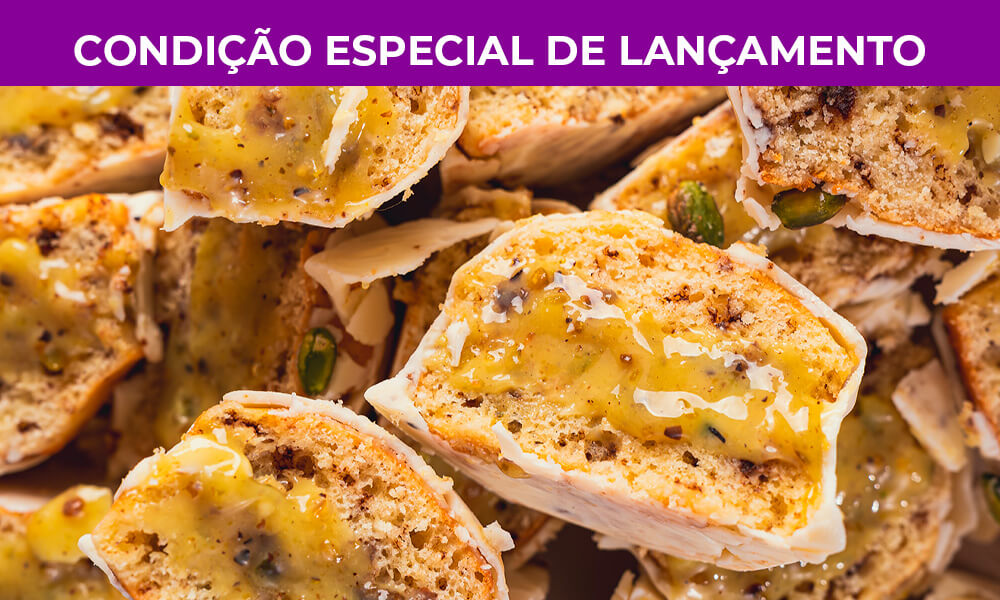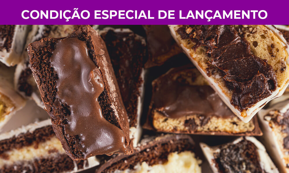 Você pode montar sua caixa mensal com: pães de mel proteicos e potinhos cremoso. A seleção dos sabores é você quem faz.